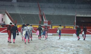 El diluvio se desató sobre la capital navarra antes de la salida del tercer novillo y dejó el ruedo en condiciones impracticables para la lidia