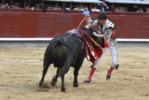 El madrileño recibió un feo pitonazo en la boca por el segundo de Baltasar Ibán cuando se disponía a efectuar la suerte suprema