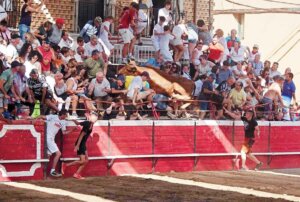El bravo astado de Arriazu persiguió a un conocido recortador riojano e hizo hilo cuando éste saltó la barrera