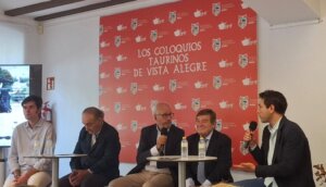 Uno de los empresarios de Vista Alegre, junto a Ricardo Gallardo, Matías González y el aficionado Sergio Gómez, abrocharon los coloquios del Excelentísimo Club Taurino de Bilbao