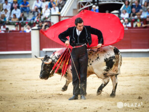 Después de un poderoso y preciso inicio se fue a los medios para dar distancia al novillo. Madrid se caía en una ovación rememorando tardes de tantas emociones. Vídeo de su regreso a Madrid