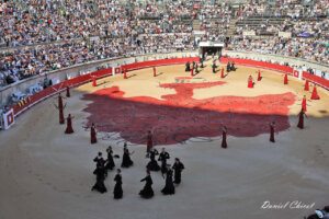 La ópera, el baile y la liturgia taurina se fundieron en un majestuoso espectáculo para abrir un festejo que estuvo presidido por el alcalde de Nimes, Jean-Paul Fournier