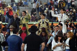 Los tres toreros salieron en hombros después de desorejar a sus astados, de las ganaderías de San Isidro, José María Arturo Huerta y Montecristo; Joselito Adame no tuvo tanta suerte en su lote y solo le pudo ganar una oreja a su segundo