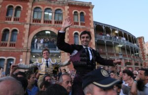 Rotunda la tarde del sevillano, cuatro orejas y un rabo de una buena corrida de Benítez Cubero; Guillermo Hermoso de Mendoza y Escribano, también volandas