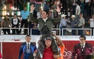 Le acompañaron en el cartel los diestros Uriel Moreno "El Zapata" y Sergio Flores, que lograron cortar una oreja cada uno