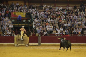 En un gesto de absoluta generosidad y compañerismo, el torero alicantino, debido a la cogida de su compañero El Califa, no quiso salir a hombros tras cuajar una excelente actuación ante el bravo Portillero de Victorino Martín