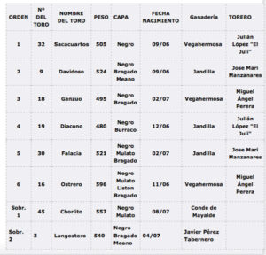 Cinco toros negros y uno burraco correspondientes a las divisas de Jandilla y Vegahermosa han sido sorteados y enchiquerados ya en el coso de El Bibio para el cartel estrella de la Feria de Gijón. Juli, Manzanares y Perera están anunciados ante ellos a partir de las seis media de la tarde. El orden de […]