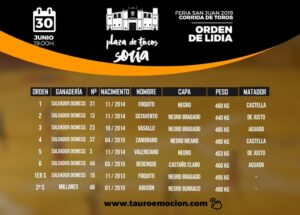 Los toros de Salvador Domecq reseñados para lidiarse esta tarde en la Feria de San Juan de Soria ya han sido sorteados y se encuentran en los chiqueros de la plaza de toros. El segundo sobrero pertenece a la ganadería de Millares. Serán estoqueados por Sebastián Castella, Emilio de Justo y Pablo Aguado, en sustitución […]