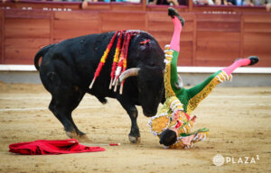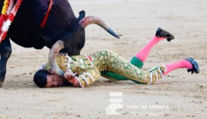 El percance sobrevino cuando nada más comenzar la faena de muleta, el toro se le vino vencido al extremeño en el primer muletazo de la primera serie por el pitón derecho.