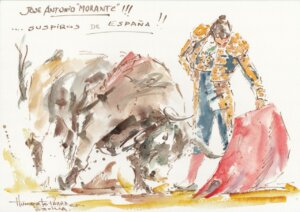 El artista peruano plasmó en tres apuntes los mejores momentos de la última corrida de la Feria de San Miguel
