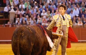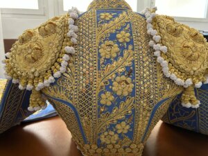 En la recién finalizada Feria de San Miguel de Sevilla, el trianero estrenó un terno azul purísima y oro inspirado en un vestido que perteneció al torero manchego