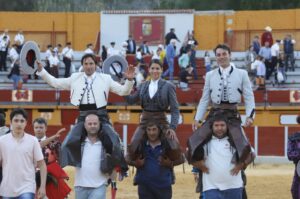 Ubrique (Cádiz). Corrida de la Piel. Toros de Virgen María, de buen juego. Andy Cartagena, dos orejas y dos orejas y rabo; Andrés Romero, oreja y dos orejas; y Lea Vicens, oreja y dos orejas.