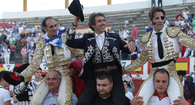 Ejea de los Caballeros (Zaragoza). Toros de José Rosa Rodrigues para rejones y de Los Bayones para lidia de a pie. El rejoneador Pablo Hermoso de Mendoza, dos orejas y ovación; Juan José Padilla, dos orejas y dos orejas y rabo; y Alberto Álvarez, dos orejas y dos orejas y rabo. Entrada: Media plaza.