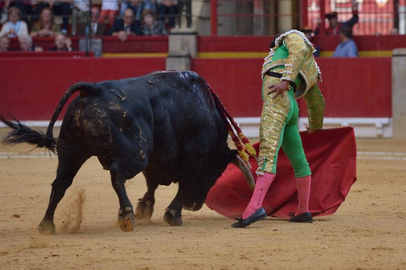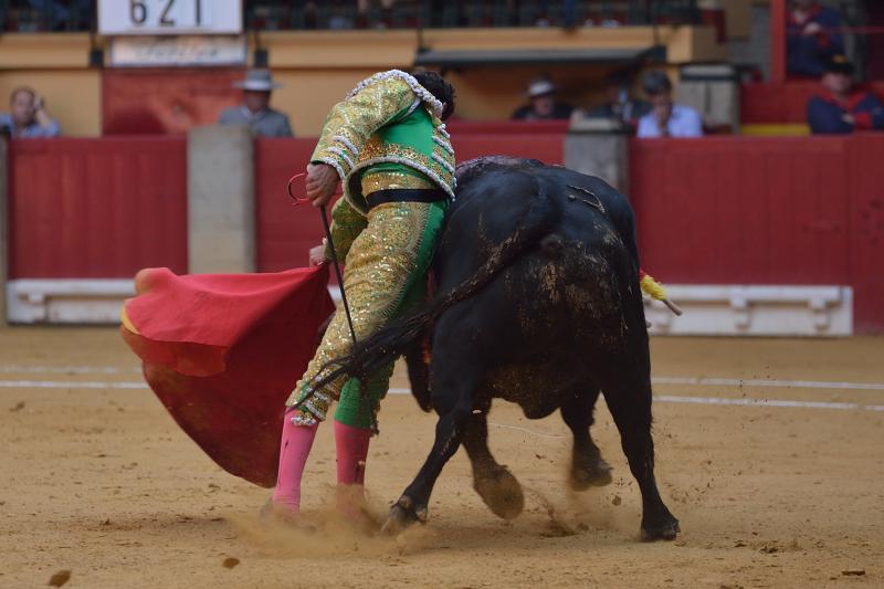 La espada dejó sin premio a Ricardo Torres en el que abrió plaza, con el que dejó algunos momentos estimables al natural, por donde el toro de Algarra embistió mejor aunque con la fuerza justa. Fueron muletazos sueltos en los que no faltó la entrega.