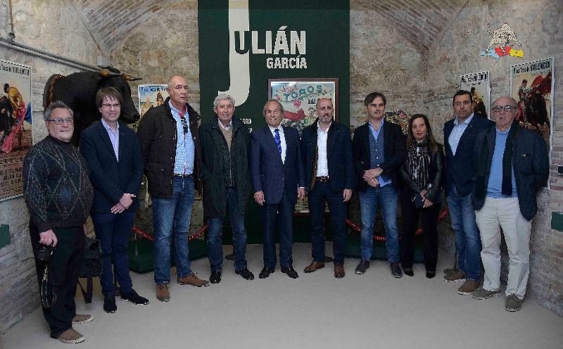 La plaza de toros de Valencia acoge desde el pasado sábado 7 de marzo y hasta el próximo día 19 en que concluya la Feria de Fallas seis nuevas exposiciones taurinas. La principal es la dedicada al matador de toros Julián García con motivo de sus bodas de oro como matador de toros. La sala de la antigua tienda del coso acoge una muestra que exhibe el terno blanco y oro del día del doctorado, la cabeza del toro de la ceremonia, el capote de paseo con la Virgen de los Desamparados bordada que lució aquel día, junto a cartelería, prensa, fotografías de la época y otros objetos personales relacionados con la vida torera del homenajeado.