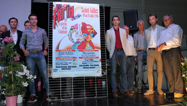 Pierre-Henry Callet y Julien Miletto presentaron ayer los carteles de la próxima Feria del melocotón y del albaricoque de Saint Gilles, que conmemorará veinte años de existencia. Con este motivo se celebrará una corrida de toros, una novillada concurso, una sin caballos y una clase práctica.