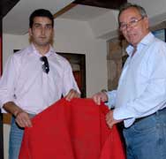 El torero salmantino Javier Castaño ha donado la muleta con la que toreó y estoqueó los seis miuras en Nimes al Museo Taurino de Salamanca. El propio torero hizo la entrega de la muleta al Presidente del Museo.
