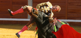El cordobés sufrió una cornada de gravedad en el muslo derecho cuando estaba cuajando al primero de la tarde, dejando a El Juli en solitario el resto de la tarde, en la que ha cortado nada más y nada menos que ocho orejas y un rabo.