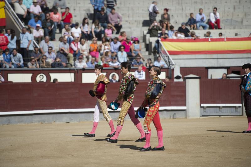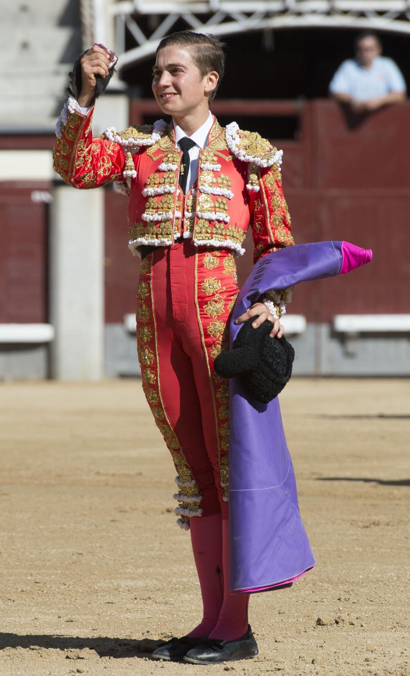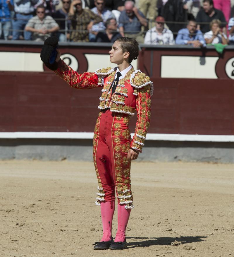 La cara y la cruz de la mañana fue para Jaime Rodríguez, de la Escuela Taurina de Moralzarzal. Cortó una oreja y resultó herido por su segundo. El trofeo lo paseó del primer eral de Jandilla. Novillo bueno, con un gran pitón izquierdo. Por ese lado surgieron los mejores pasajes de una labor intermitente rubricada de una gran estocada. Resultó herido al entrar a matar al cuarto, un ejemplar con genio, al que superó con carácter y amor propio. Tuvo arrestos para estoquear a su oponente con un torniquete antes de pasar a la enfermería.