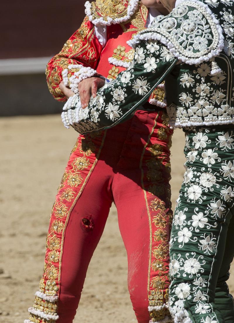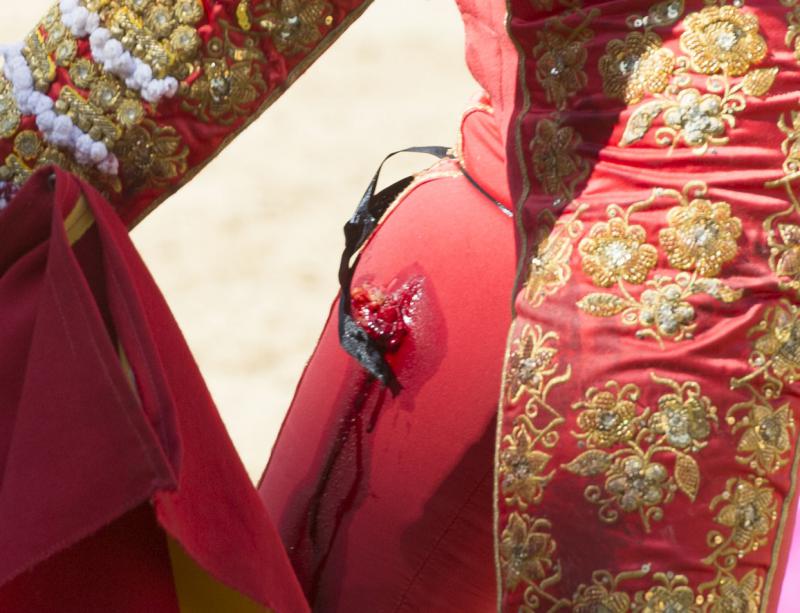 Parte médico de Jaime Rodríguez: "Herida por asta de toro en tercio medio cara anterior del muslo derecho con dos trayectorias. Una hacia arriba de 15 centímetros que produce destrozos en músculos cuádriceps y otra hacia abajo de otros 15 centímetros. Es intervenido quirúrgicamente en la enfermería de la plaza y trasladado a la Clínica Virgen del Mar. Pronóstico menos grave. Firmado: Dr. García Padrós".
