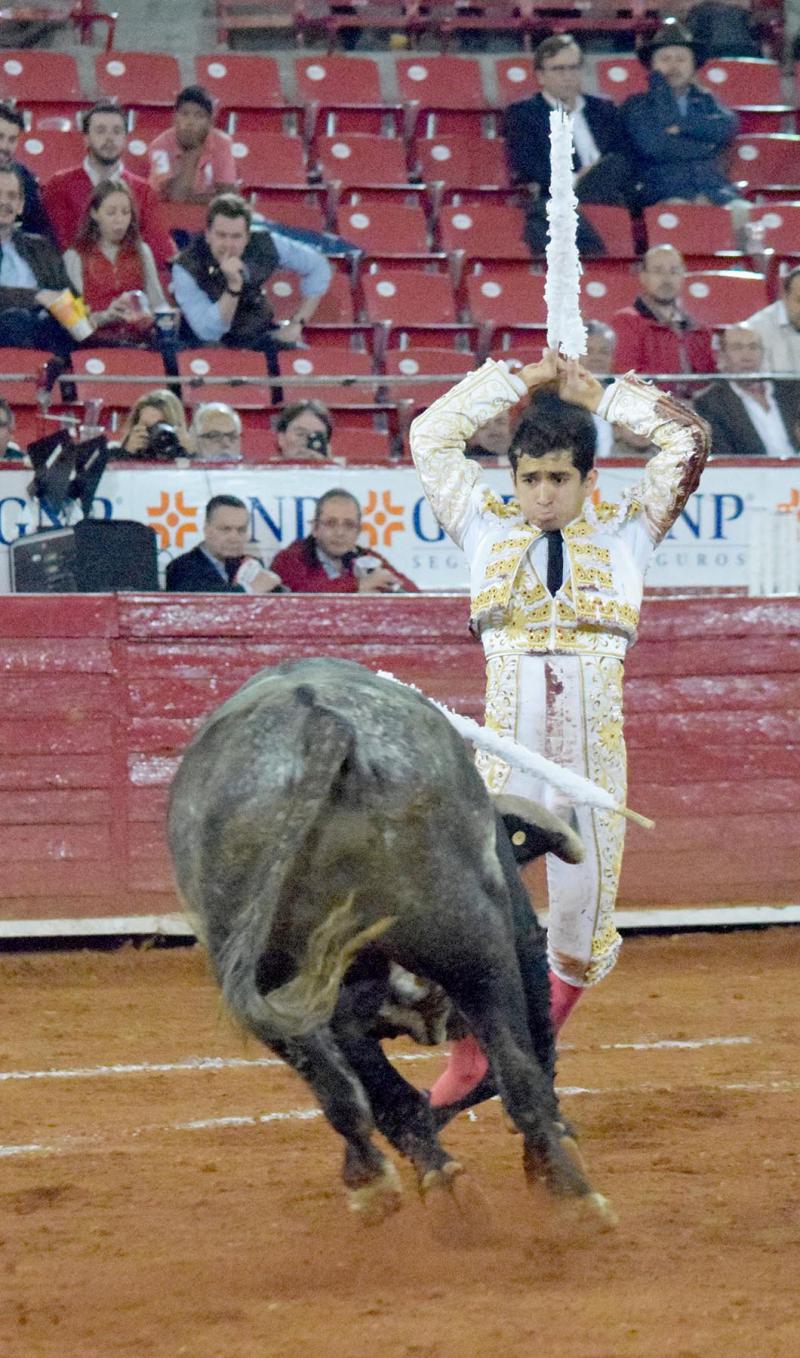 Tras el paseíllo, se guardó un minuto de silencio en memoria del ganadero Fernando Ochoa Ponce de León y del banderillero Joaquín Angelino. Al primer toro de la tarde, de San Isidro, lo cuajó de capote con lances a pies juntos rematando con media verónica. Realizó un quite por tafalleras. Con la muleta, lo más destacado llegó sobre el pitón izquierdo, pero se le atascó la espada y se le esfumó el premio.