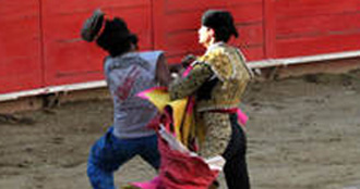 El novillero colombiano Juan Camilo Alzate agredió a un espontáneo que saltó a torear de salida al segundo de sus toros en el festejo de ayer domingo en el Nuevo Progreso de Guadalajara. El espontáneo, que dio un pase por alto con las dos rodillas en tierra, fue alcanzado por el torero que, mediante un fuerte puñetazo en el rostro, le dejó noqueado en el ruedo.