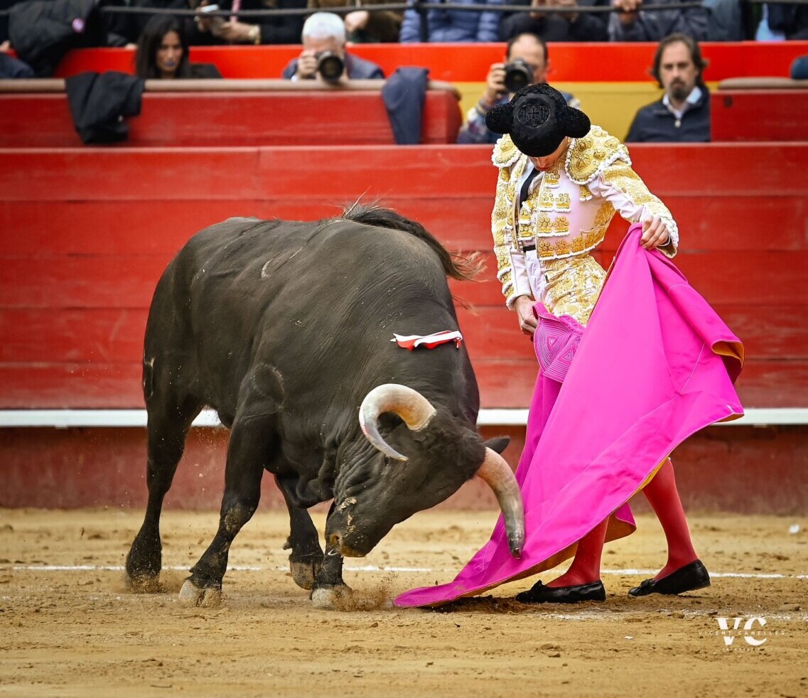 Juan Ortega paró el tiempo en Valencia. Su toreo a la verónica fue de una despaciosidad que pareció dormirse en el lance. La tersura del vuelo, el ritmo de sus brazos caídos, el embroque mecido… Se paladeó cada lance con el alma. Una obra de arte del trianero, todo un homenaje a otro sevillano que fue grandioso con el capote, Curro Romero, que cumplía justamente 65 años de alternativa en esta misma plaza. Dos colosos del toreo a la verónica.