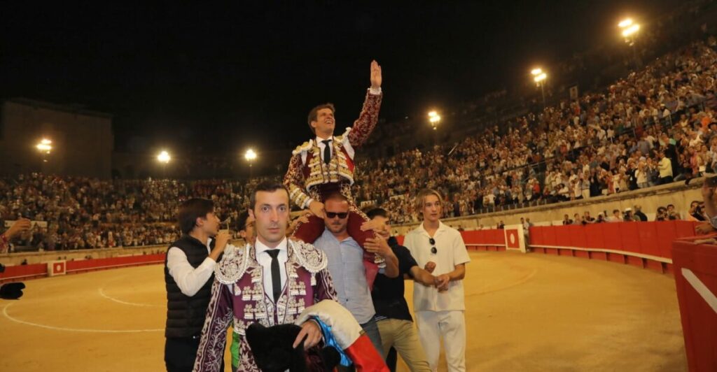 Nimes (Francia), domingo 17 de septiembre de 2023. Feria de la Vendimia. Toros de Victoriano del Río (2º bis) y uno, jugado como sobrero, de Virgen María (5º ). De juego variado, destacando el segundo y tercero. Nobles en general. El Juli, dos orejas y oreja; Tomás Rufo, dos orejas y saludos; y Solalito, que toma la alternativa, vuelta al ruedo y oreja. Entrada: Lleno de "No hay billetes".