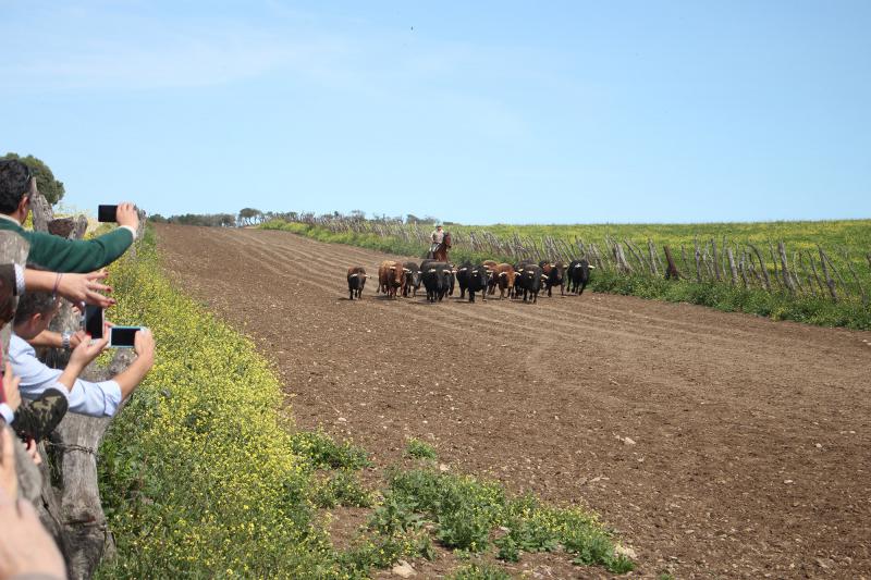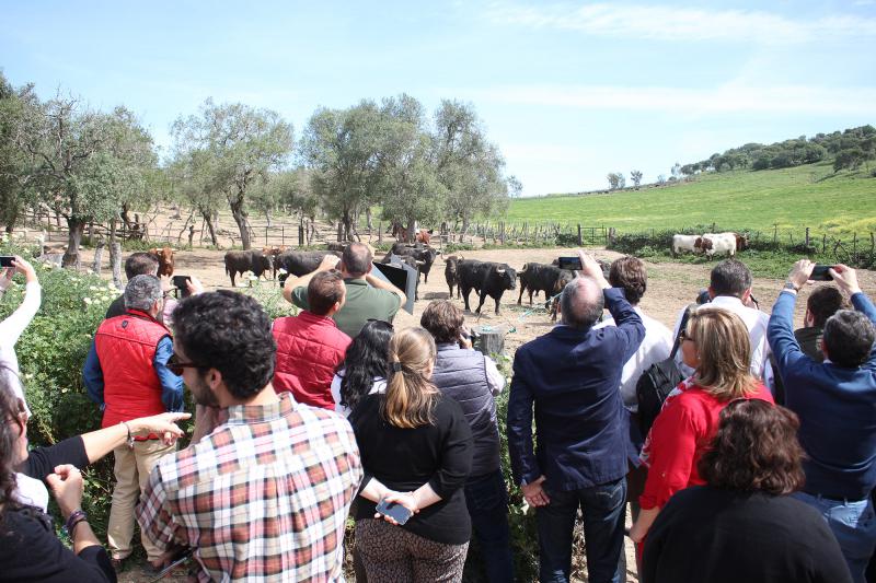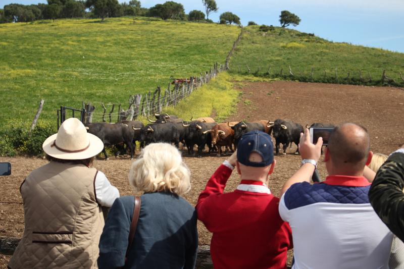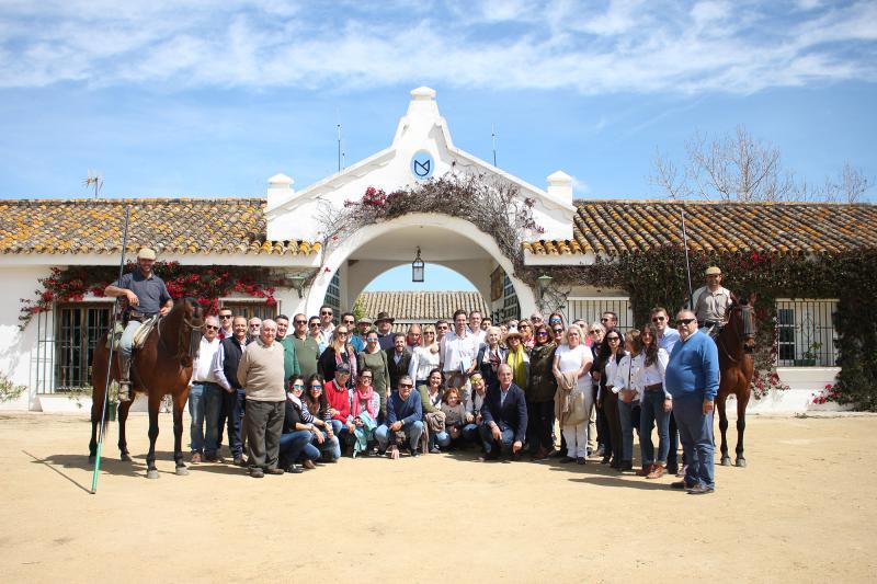 La Empresa Pagés ha comenzado hoy una de las actividades más atractivas de su extenso programa de preferia con la visita a la ganadería de Núñez del Cuvillo, una de las más prestigiosas de la cabaña brava actual, que lidiará dos corridas este año en Sevilla. La iniciativa, organizada en colaboración con Fomento Cultural de la Tauromaquia Hispanoamericana, viene precedida por el éxito de las celebradas el año pasado y ha vuelto a hacer las delicias de un grupo de 60 aficionados, elegidos por sorteo entre abonados y seguidores de las redes sociales de la plaza de toros. La experiencia consiste en llevar a aficionados al campo de forma totalmente gratuita para que conozcan de primera mano la vida del toro bravo.