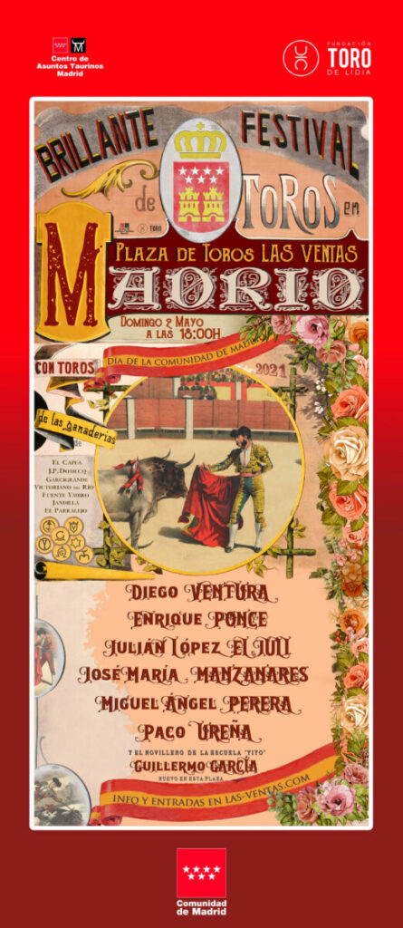 El festival del 2 de mayo, que dará comienzo a la seis de la tarde, queda conformado con las ganaderías de El Capea, Juan Pedro Domecq, Garcigrande, Victoriano del Rio, Fuente Ymbro, Jandilla y El Parralejo para el rejoneador Diego Ventura y los matadores Enrique Ponce, El Juli, José María Manzanares, Miguel Ángel Perera, Paco Ureña y el novillero Guillermo García, alumno de la Escuela José Cubero "Yiyo".