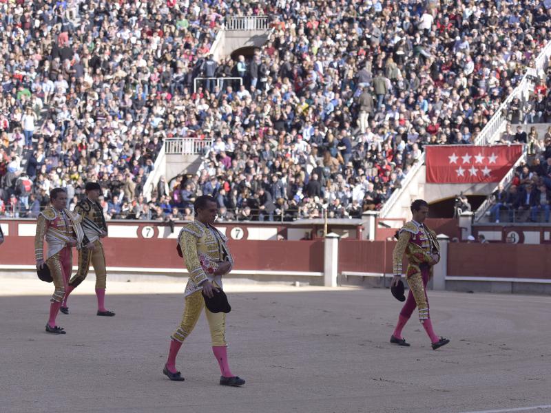 Madrid, domingo 27 de marzo de 2016. Toros de Martín Lorca, Escribano-Martín (2º y 6º) y un sobrero (6º bis) de José Luis Pereda. Bien presentados, aparatosos de pitones. Bueno el 1º, con nobleza; exigente y encastado el 3º; deslucidos en distintos grados 2º, 4º y 5º. El 6º bis, manejable. Morenito de Aranda, ovación con saludos tras aviso, silencio y silencio; Iván Fandiño, silencio, silencio y ovación con saludos tras petición. Entrada: Menos de media plaza en tarde fría y ventosa. Ambos toreros saludaron una ovación al término del paseíllo.