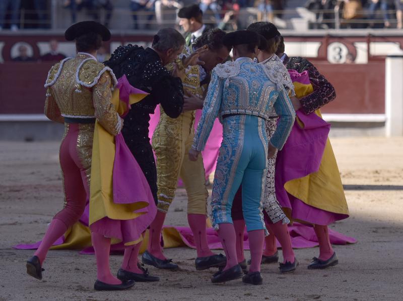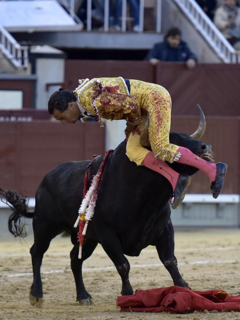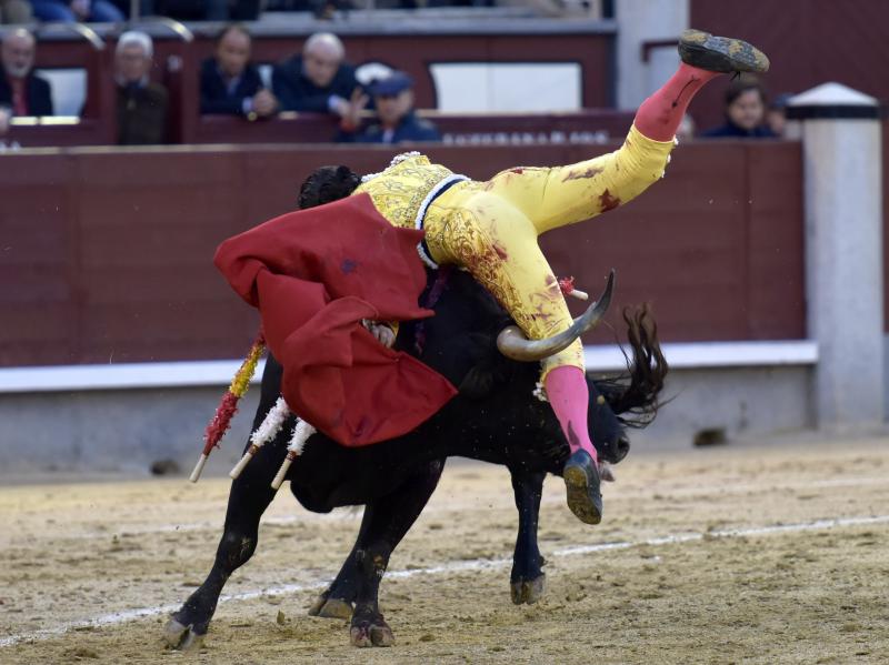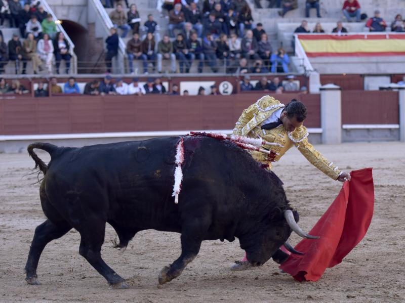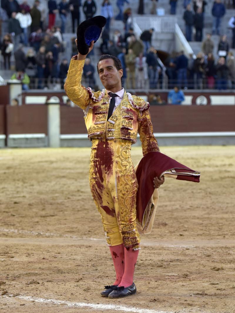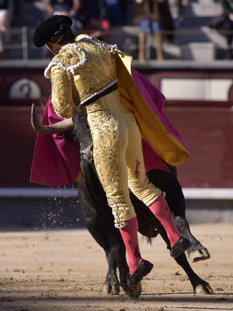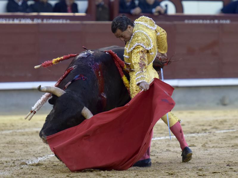 El sexto fue devuelto a los corrales tras blandear en el primer tercio. En su lugar saltó un sobrero de José Luis Pereda justo de fuerza y manejable. Fandiño tiró de corazón y de raza, queriendo mucho. Dio dos tandas buenas por el pitón derecho. Bajó algo sobre el izquierdo, pero el trasteo remontó de nuevo el vuelo en un final por bernadinas. Heroica fue su manera de entrar a matar, encunándose sobre los pitones, dejando un espadazo contrario y siendo volteado aparatosamente. El toro tardó en caer y Fandiño, con la cara ensangrentada y el vestido roto, vio cómo le pidieron la oreja. El presidente no accedió y todo quedó en una fuerte ovación con saludos.