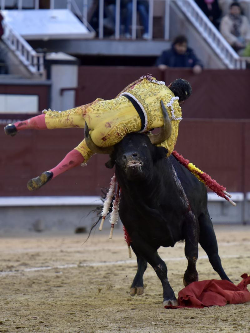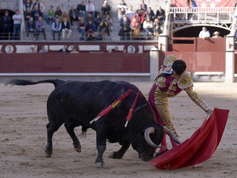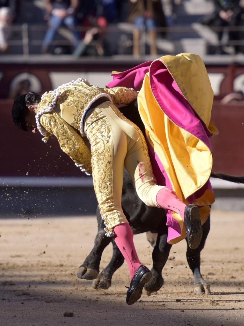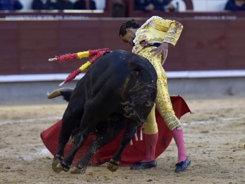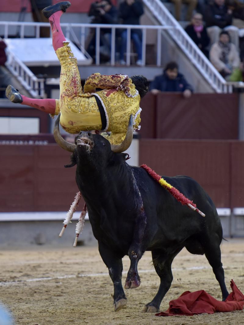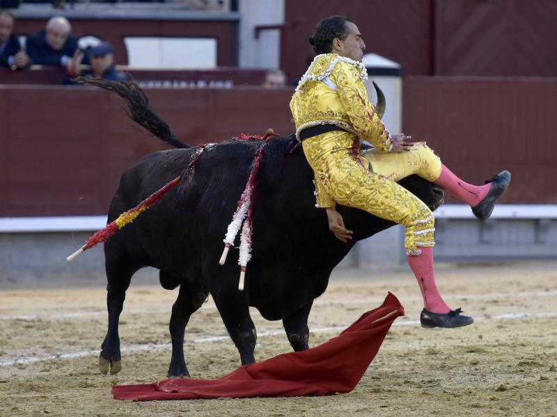 El sexto fue devuelto a los corrales tras blandear en el primer tercio. En su lugar saltó un sobrero de José Luis Pereda justo de fuerza y manejable. Fandiño tiró de corazón y de raza, queriendo mucho. Dio dos tandas buenas por el pitón derecho. Bajó algo sobre el izquierdo, pero el trasteo remontó de nuevo el vuelo en un final por bernadinas. Heroica fue su manera de entrar a matar, encunándose sobre los pitones, dejando un espadazo contrario y siendo volteado aparatosamente. El toro tardó en caer y Fandiño, con la cara ensangrentada y el vestido roto, vio cómo le pidieron la oreja. El presidente no accedió y todo quedó en una fuerte ovación con saludos.