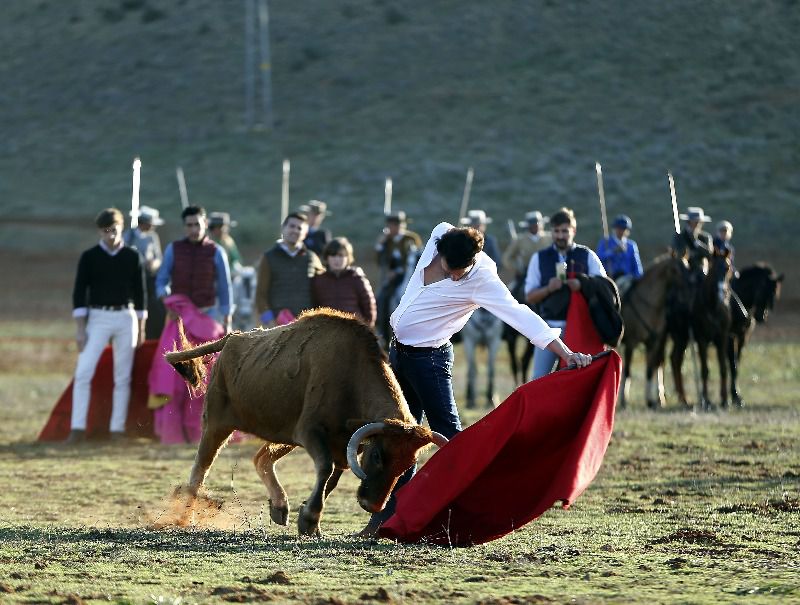 El día de La Saucedilla tuvo una segunda parte en la que corrieron vacas viejas y se toreó, a pie y a caballo, las que salían olvidadas. En tales menesteres Finito de Córdoba es más que experto maestro en buscarles las vueltas y encontrarles el resquicio, a veces un pitón, una distancia única, que suele ser milimétrica, ni un paso más ni un paso menos, una altura exacta para el cite y para el vaciado, un terreno en el que los animales se sientan más a gusto y se defiendan menos, en realidad un mapa y un guion del que es imposible salirse si le quieres pegar diez, quince pases de esos que te hacen sentir importante, de los que llenan tu ego de torero y entonces no encuentras en el Cossío por quién cambiarte. No es tarea fácil, todo lo contrario, porque pocas vacas, salvo milagro, embisten de primeras. Por todo ello, en realidad torear una vaca vieja es desarrollar un tratado de tauromaquia que ayuda a reafirmarte en tu estima de torero y hablo por quienes han experimentado esa sensación y por quienes no la hemos alcanzado nunca en ese nivel. Yo entiendo que Fino esté enganchado a tales menesteres. Debe sentirse Dios y para nosotros es un gozo verle por mucho coraje que te dé y acabes preguntándote por qué a ese torero no se le ve en las ferias.