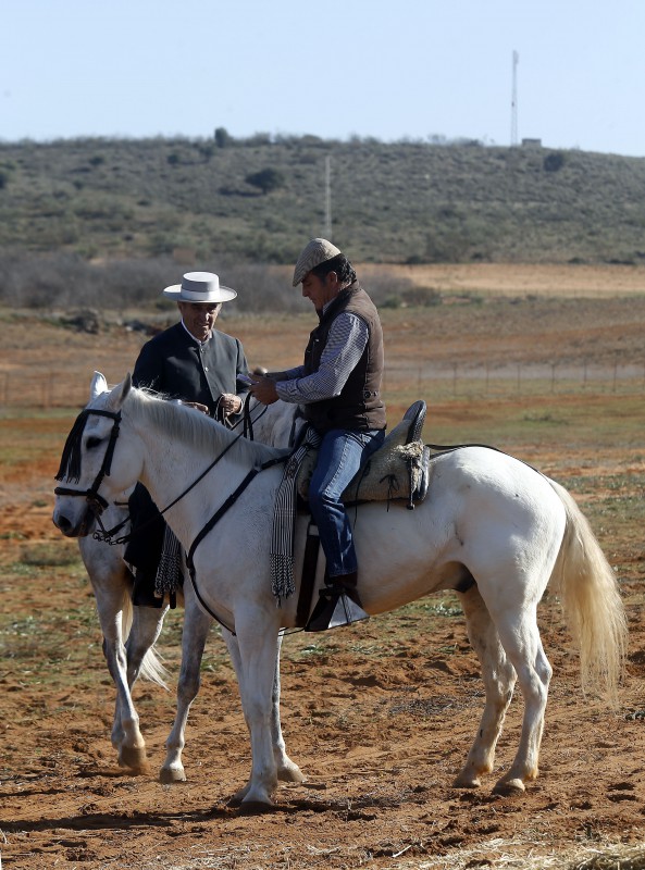 En busca de ese espíritu campero acudimos a La Saucedilla, donde se tientan machos de Fuente Ymbro a campo abierto. Es un día de fiesta y responsabilidades. Se buscan sementales y se testa la camada de toros de la temporada del 2022 cuando los erales de ahora serán toros de corrida. La Saucedilla son cuatrocientas cincuenta hectáreas en el término gaditano de Bornos, a la vera del pantano de Arcos, donde Ricardo Gallardo tiene el grueso de las vacas de vientre de Fuente Ymbro. Han acudido garrochistas de primera categoría, tres sagas, tres, ya se sabe que esto de la garrocha se agrupa por familias, en la mayoría de los casos familias ganaderas que son quienes mejor lo comprenden. Aquí están hoy los Cañaveral, los Molina y los González, más de quince jinetes. Luego, cuando hablas con ellos y les preguntas por los mejores, te nombran además a los Buendía, a los Domecq, a los Campos Peña, a los Guardiola, a los Miura, a los Erquicia, a los De la Puerta… una lista que excedería los lindes de un reportaje y a la que habría que añadir los matadores de toros que en la actualidad beben los vientos por lo que coloquialmente se conoce como el palo, locos por el palo hay muchos, empezando por Juli y siguiendo por Fandi, Capea, Perera, Tejela…
