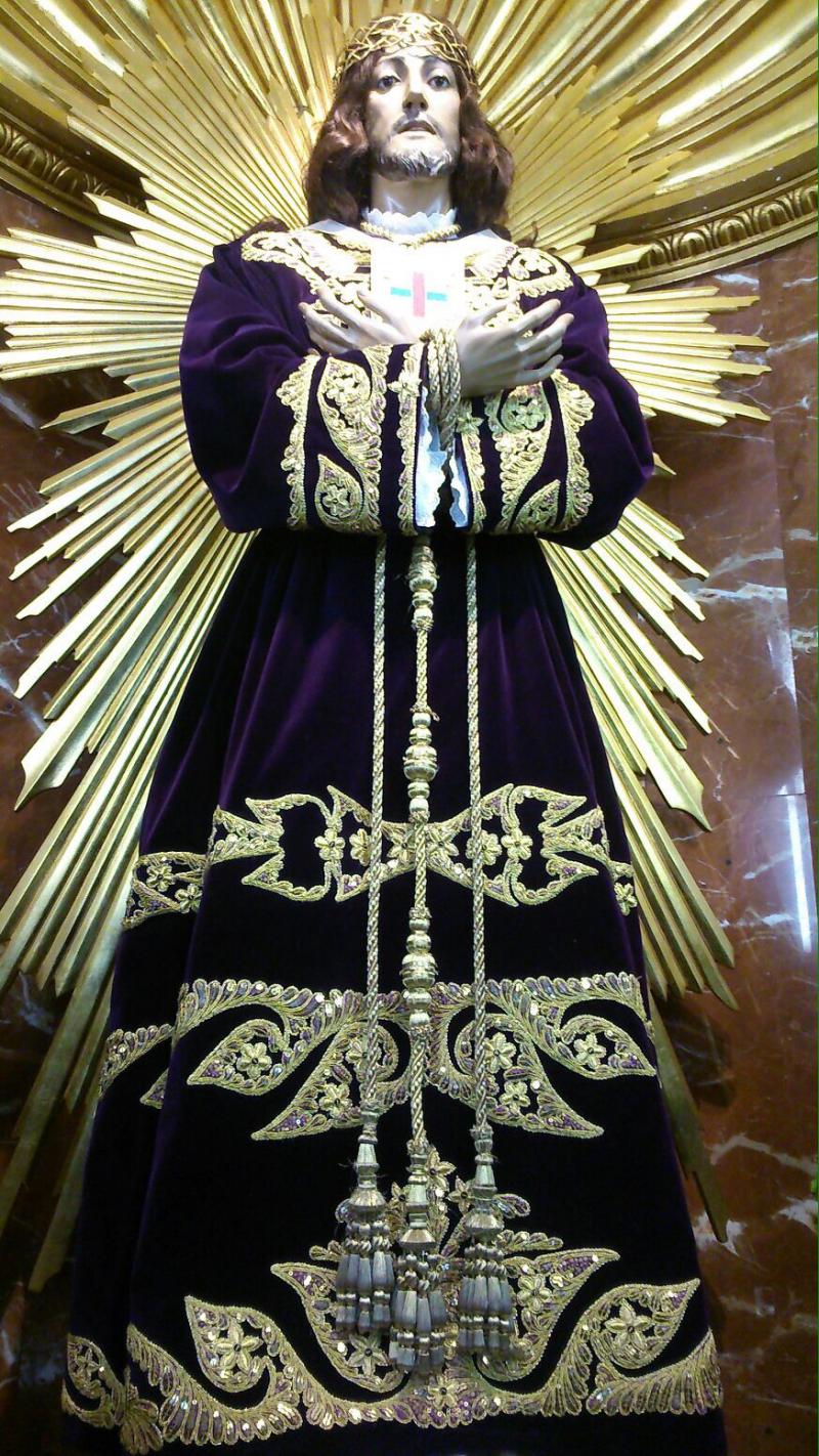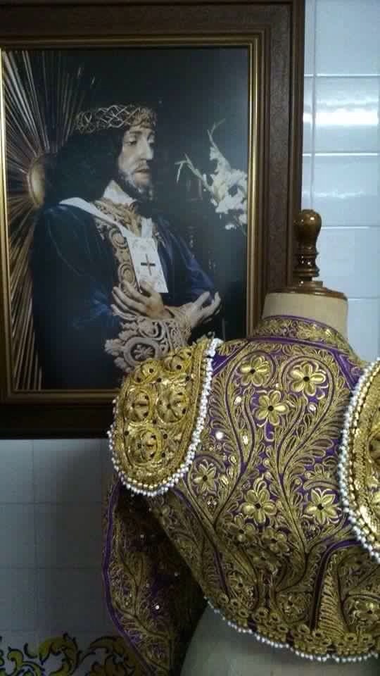 Aníbal Ruiz se retiró en septiembre de 2014 cortando diez orejas en su actuación en solitario en la plaza de su tierra, Alcázar de San Juan, tras dieciséis años como matador de toros. Ahora, contempla "feliz y orgulloso" la preciosa túnica que viste el Cristo del que es devoto.