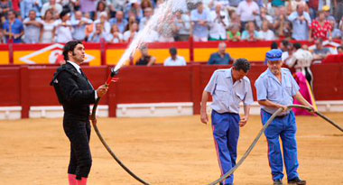 En el intermedio del festejo celebrado este martes en Alicante, Morante de la Puebla cogió la manguera y se puso a regar la plaza. El sevillano, que ya había mostrado su contrariedad por la polvareda levantada durante la lidia de su primer toro, quiso encargarse él mismo de dejar el ruedo según sus apetencias.