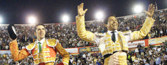 El cartel más importante de la Feria del Solo de Mérida no defraudó. Con casi lleno en los tendidos se lidió una corrida de Rancho Grande y El Prado, que resultó noble y que propició el triunfo de la terna. De los jugados, destacó el bravo cuarto, indultado por Leonardo Benítez.
