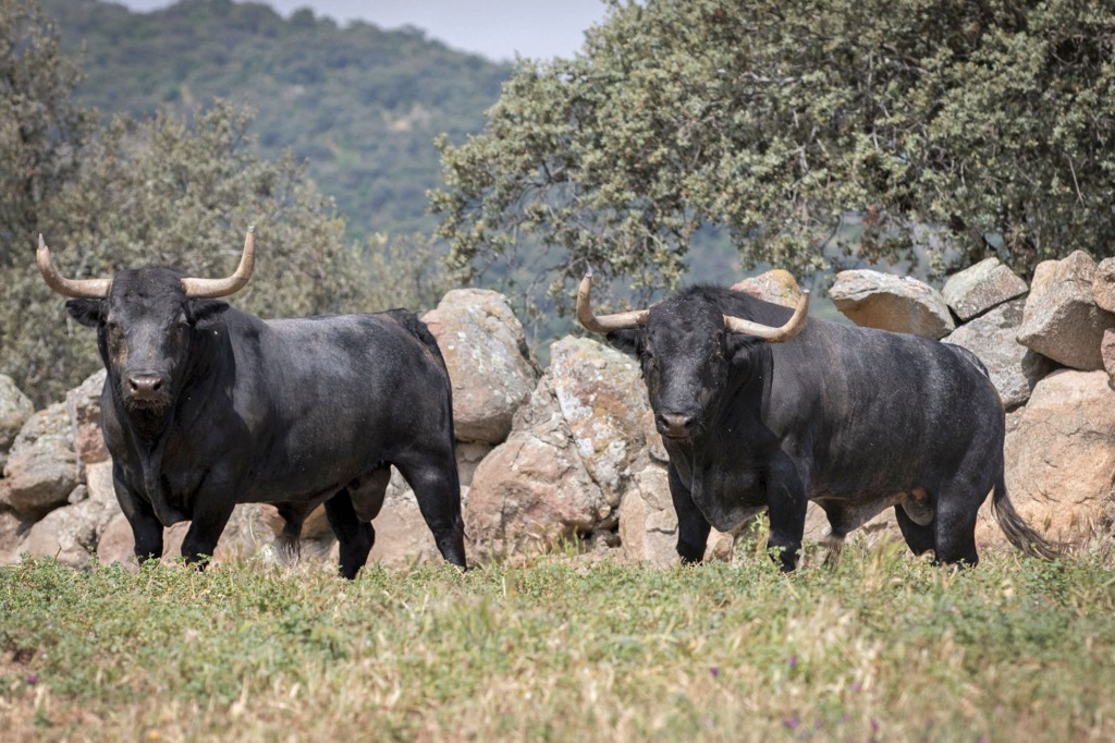 La primavera espejea en Los Alijares devolviendo al visitante una paleta de colores en la que los tonos verdes, amarillos, púrpuras, blancos y rojos motejan el cárdeno de los toros que pacientemente se dejan fotografiar debajo de frondosas encinas pardas.