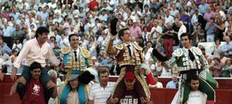 Por su parte, Morante tiró de orgullo y valor en el quinto para acompañar a sus compañeros en volandas. El de La Puebla se impuso a un astado de rebrincada embestida que parecía que no iba a romper en la muleta, pero que el sevillano supo meter en la canasta. Morante sacó a relucir su técnica y su valor ante un toro que se quedaba corto y reponía. A base de tragarle mucho al final consiguió cuajarlo. A ello le sumó sabor añejo en las salidas de la cara del animal y mucha personalidad en todo lo que hizo. Una estocada algo tendida sirvió para que el público pidiera las dos orejas, la segunda algo benévola, pero que premia el esfuerzo del diestro.