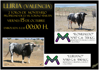 Por motivos meteorológicos ayer día 12 de octubre, no se pudo realizar el último festejo taurino de la localidad de Lliria (Valencia), siendo trasladado dicho festejo para el próximo viernes 15 de octubre.