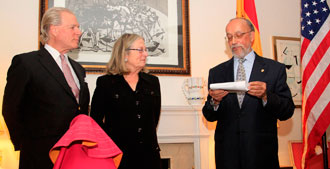 El Cónsul General de España en Nueva York, Juan Ramón Martínez Salazar, otorgó anoche la Medalla del Mérito Civil a Lore Monnig, presidenta del New York City Club Taurino, en un acto celebrado en la residencia del cónsul en la Quinta Avenida. Esta condecoración como Oficial de la Orden a Lore Monnig honra los más de 30 años de servicio a los aficionados a los toros en Estados Unidos. La Medalla al Mérito Civil la concede el Rey de España a propuesta del Ministerio de Asuntos Exteriores.