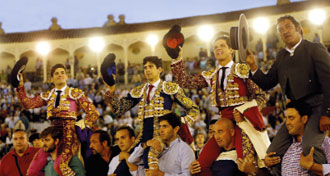 ¿Significa todo eso que los consagrados no tienen interés?... La respuesta es fácil, en el marco actual no el suficiente. Basta con ver los aforos que logran o la necesidad de agruparse en un mismo cartel para cubrirse el prestigio taquillero que les permita negociar con ventaja, lo que por cierto no deja de ser una especie de reconocimiento inconsciente de su debilidad. No quieren o no querían darse cuenta que tres figuras en un solo cartel como fórmula de salvamento es como ponerle grilletes al futuro en este caso además por la vía de la economía. Si las tardes de lleno y parece que ocurre con frecuencia, supone perder dinero se entenderá que no es natural, que algo no funciona. Esa es por tanto fórmula de corto recorrido.