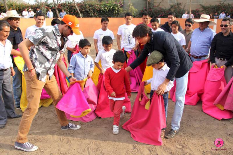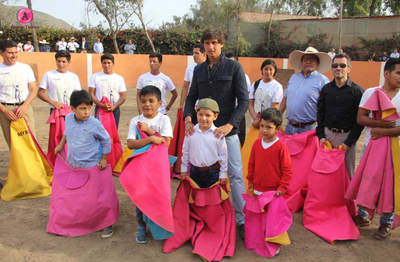 El institución limeña Fundo La Esperanza recibió este fin de semana una visita muy especial para todos los niños y niñas, los hermanos Roca Rey, quienes se acercaron a la institución para protagonizar una clase teórico-práctica de toreo de salón con los aficionados más jóvenes.