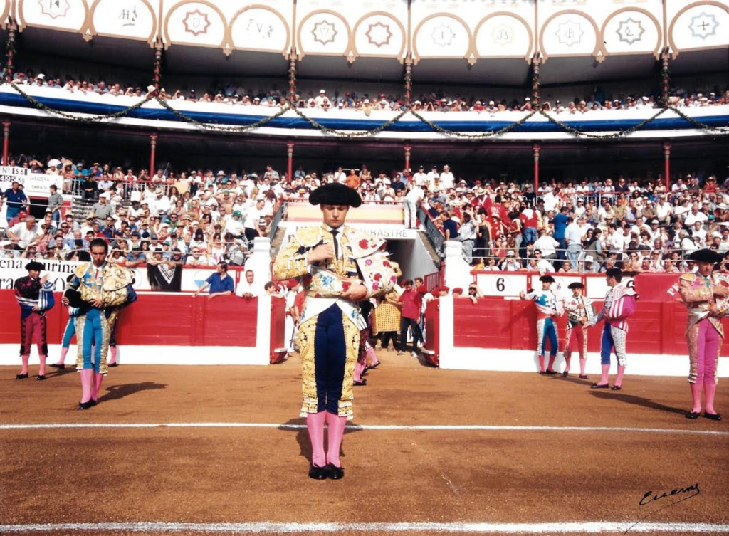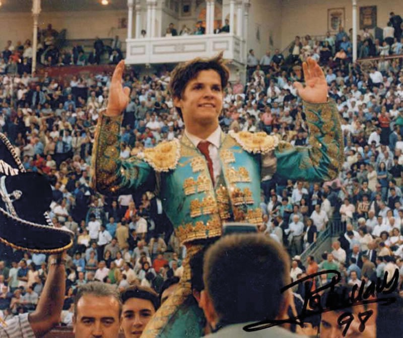 21/05/1999.- Nimes (Francia). Lleno de “No hay billetes”. De verde manzana y oro. Toros de Alcurrucén, Daniel Ruiz, Toros de El Torero, Jandilla, José Luis Marca y Torrestrella. Palmas, oreja, silencio, oreja, silencio y oreja.
