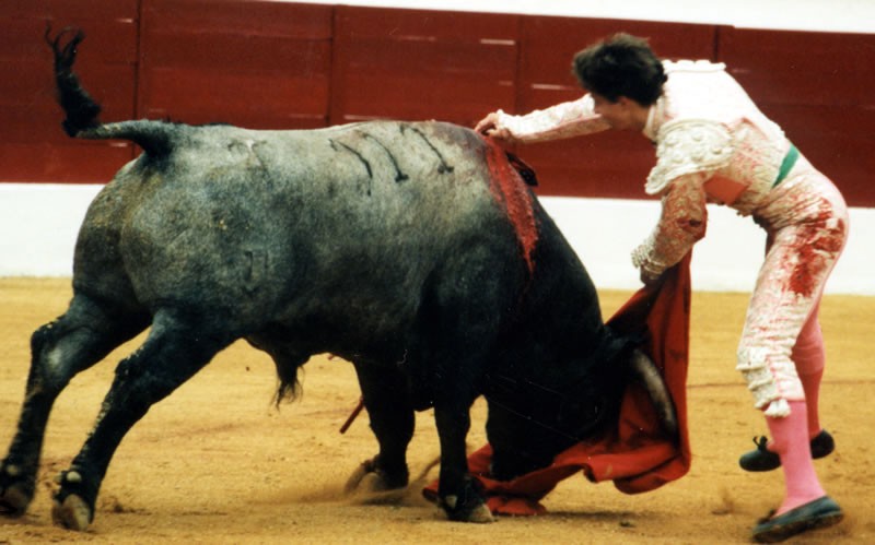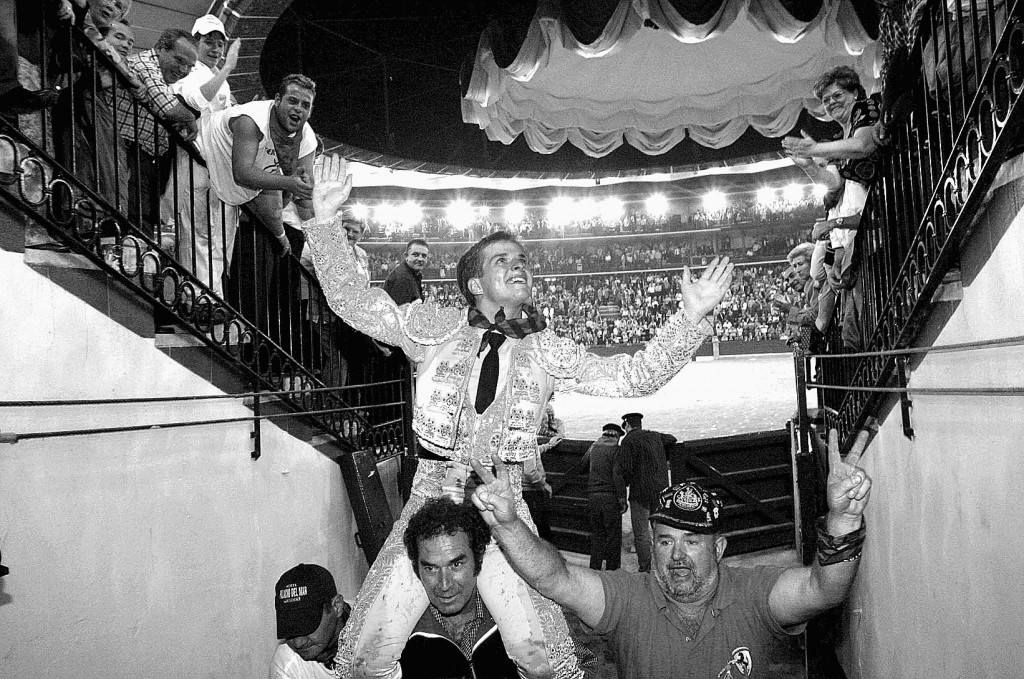 11/10/2003.- Zaragoza. Lleno de “No hay billetes”. De blanco y oro. Toros de Partido de Resina, Zalduendo, Adolfo Martín, Las Ramblas, Parladé (que sustituyó al titular de Javier Pérez-Tabernero) y Juan Pedro Domecq. Ovación con saludos, oreja, silencio, oreja, ovación con saludos y dos orejas.