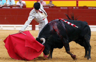 David Galván se topó en primer lugar con un novillo rebrincado y áspero con el que no pudo brillar. Pero sí pudo hacerlo con el quinto en muletazos de mano baja que encandilaron al público por la elegancia y le regusto del novillero gaditano. Bernabéu puso ganas en sus trasteos pero se le notó su falta de bagaje.