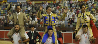 Luis Bolívar ha paseado los máximos trofeos simbólicos del quinto toro de la tarde tras lograr el perdón de "Tontillo", un sensacional ejemplar de El Torreón. El colombiano salió a hombros junto a Jesulín de Ubrique, que obtuvo dos apéndices, y el mayoral de la ganadería mientras que Ambel Posada tuvo que conformarse con saludar una ovación.