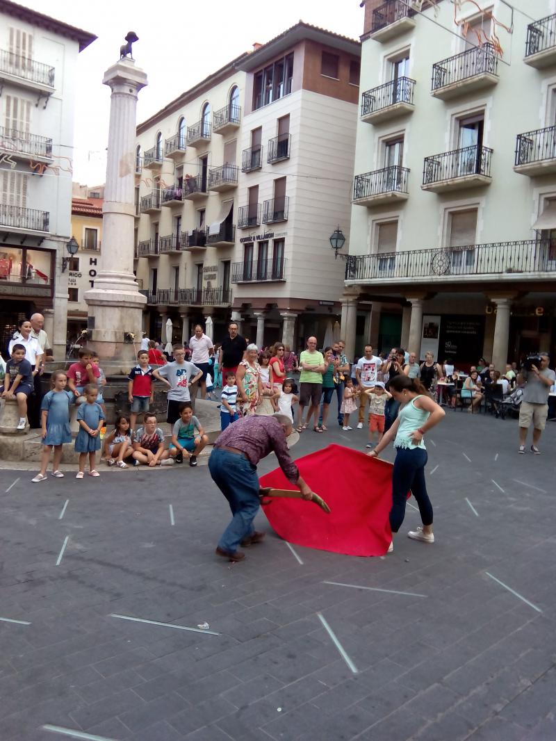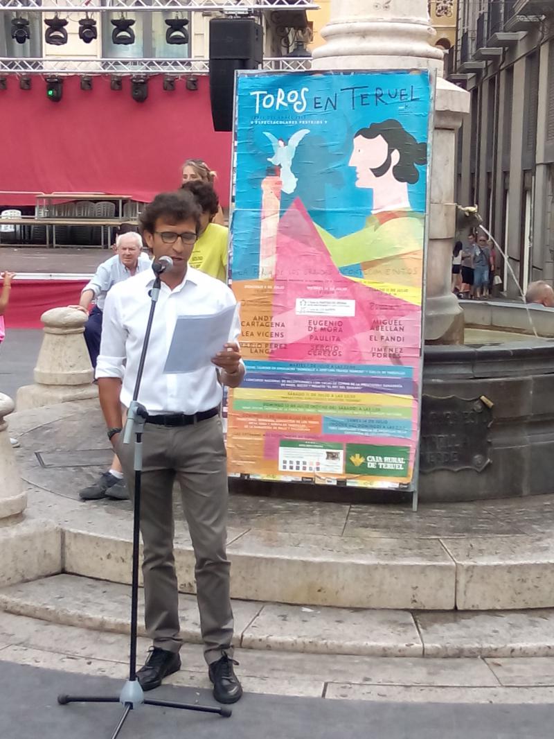 La emblemática Plaza del Torico de Teruel ha albergado este sábado la lectura del pregón taurino que sirve para dar el pistoletazo de salida a la Feria del Ángel. En esta ocasión, el conocido turolense Luis Milla ha sido el encargado de protagonizarlo. Una vez finalizado el acto se ha celebrado un concurso de toreo de salón en el que numerosos niños han participado.