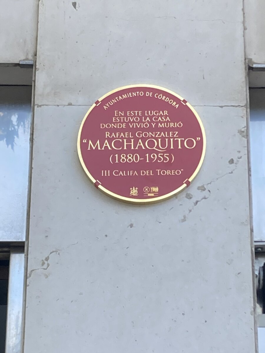 El Ayuntamiento de Córdoba ha instalado y descubierto este viernes una placa en el lugar donde estuvo la casa en la que vivió y murió Rafael González "Machaquito (1880-1955), tercer Califa del toreo. El acto ha tenido lugar este mediodía con la presencia de Marian Aguilar, teniente alcalde y delegada de Cultura; Leopoldo Tena, subdirector general de Cultura; familiares de Machaquito; y Francisco Gordón, coordinador del Capítulo de la Fundación Toro de Lidia en Córdoba.
